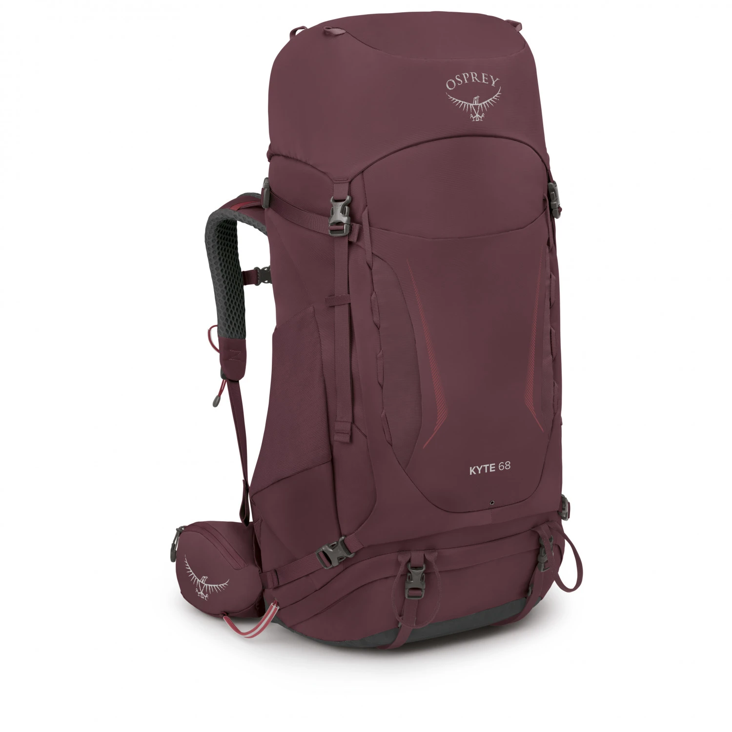 The Women’s Kyte 68 is a toploader trekking backpack that can also be opened by the front. This allows you to reach inside without having to open the lid. In addition, the Osprey backpack is equipped with a water-repellent DWR treatment and a rain cover for protection against moisture and dirt.