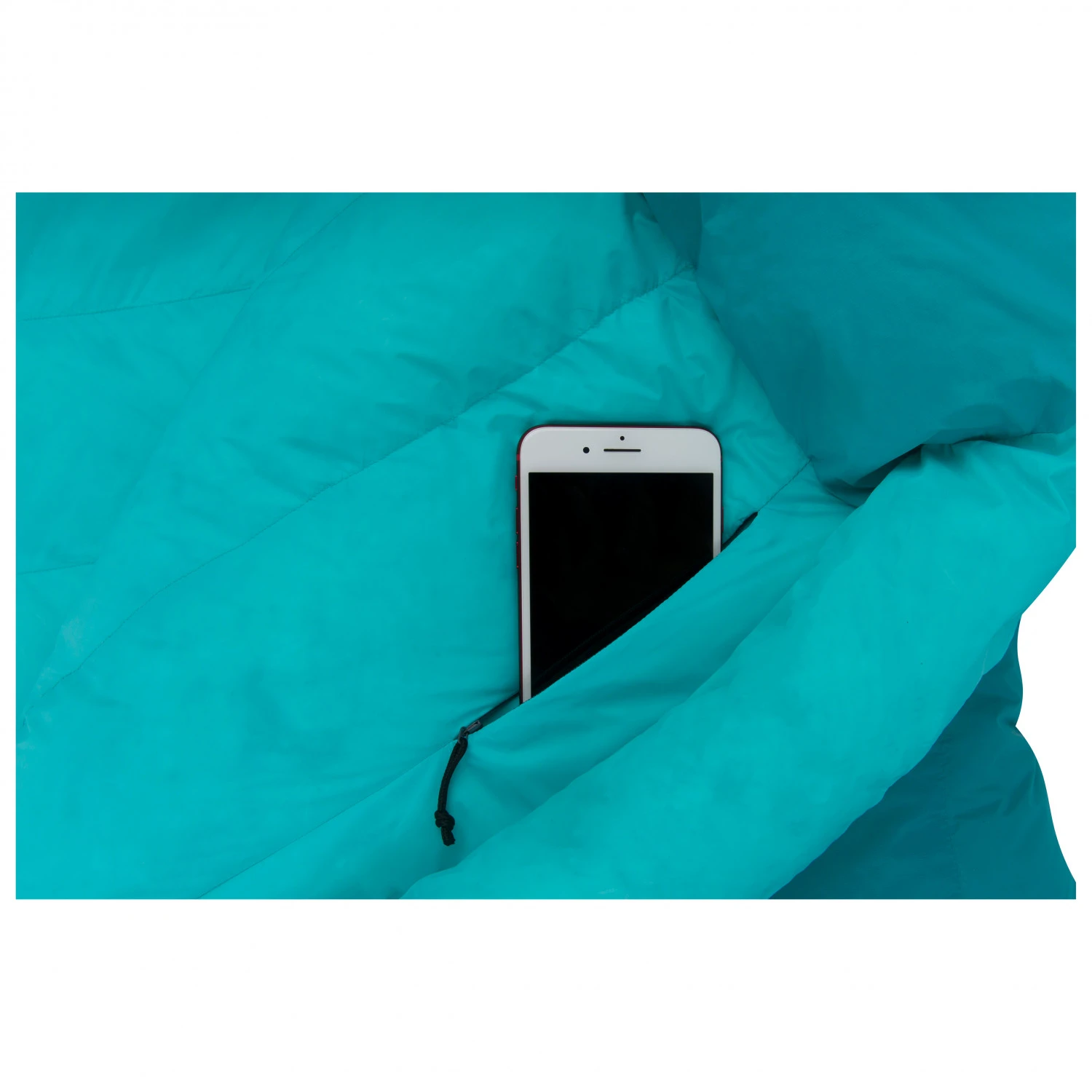 The zips make getting in and out of the sleeping bag super convenient. In addition, the sleeping bag can also be used as a blanket. Further features such as the draught collar, the inner pocket, the adjustable hood and the foot box filled with additional Thermolite round off the functionality and comfort of the spacious sleeping bag.