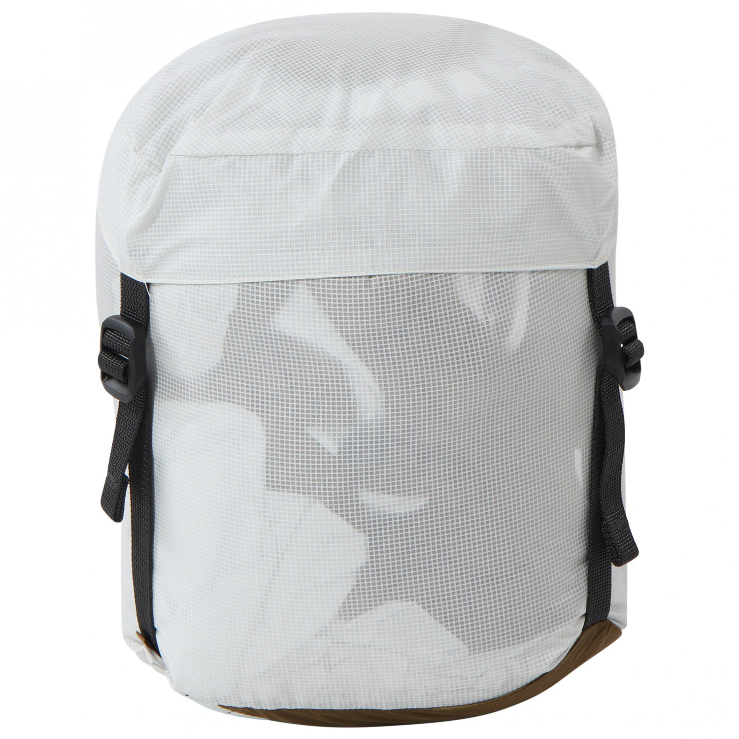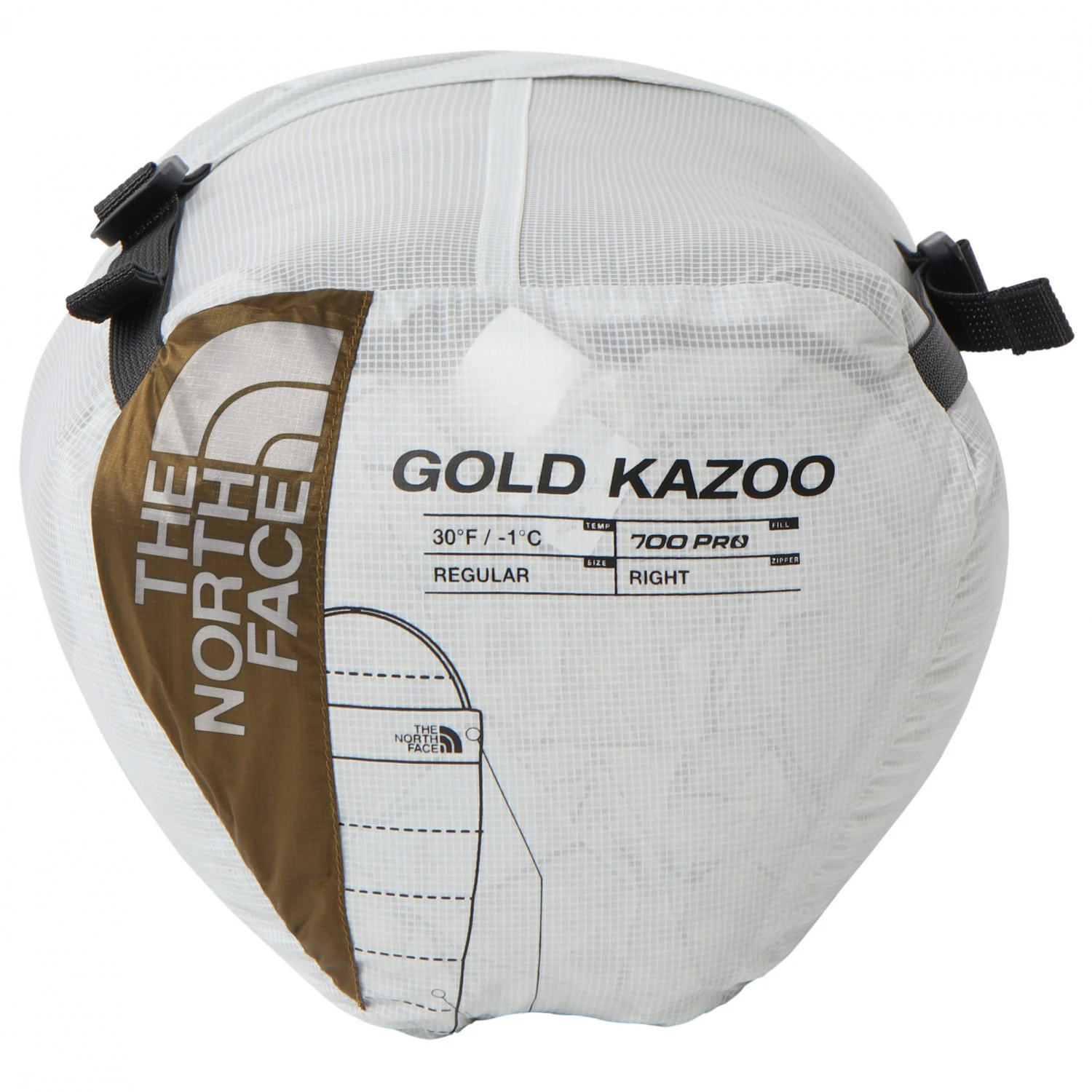 The Gold Kazoo Eco down sleeping bag from The North Face offers warmth, comfort and function in a sustainable way! This durable mummy sleeping bag ensures reliable sleeping comfort on outdoor adventures through excellent material and an intelligent construction. Its shell is made from recycled nylon and features a PFC-free, permanently water-repellent coating. Plus, the puffy and highly compressible 700 down fill also comes from recycled sources. It will retain its comfortable softness and high thermal performance over many seasons.